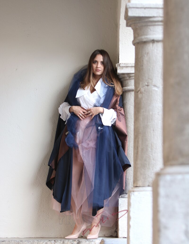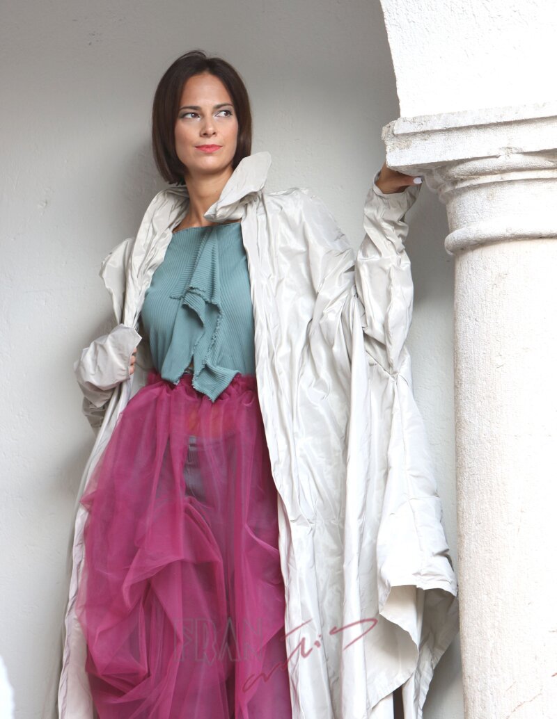 *raznolikost u raskoši kopčanja metalnim drukerima koja omogućava modeliranje osnovnog plašta i nošenje prema baznoj odjevnoj kombinaciji, pri dnevnom ili večernjem izlasku s uvijek novim izričajem i potpisom