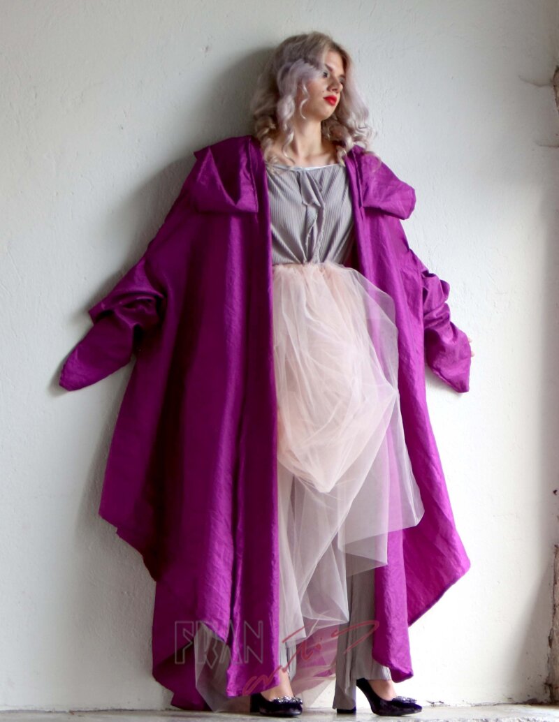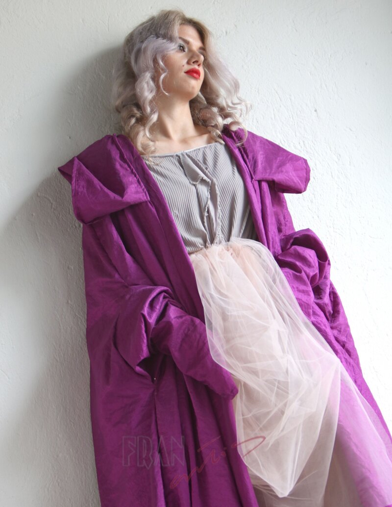 *poveznica kolekcije krojna linija A raskošnog ogrtača, kapuljača s vizirom za umetanje, rukavi s kopčanjem na prst